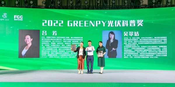 会议期间,经大会评奖委员会的推荐、投票和选举,评选出2022年度GREENPV集体奖及个人菁英奖等多个奖项。凯发k8嘉盛凭借众多光伏绿色建材创新产品及优秀解决方案,荣获集体奖项——GREENPV技术创新奖,零碳研究院副院长吴翠姑荣获GREENPV 个人菁英奖——光伏科普奖。
