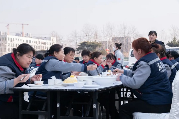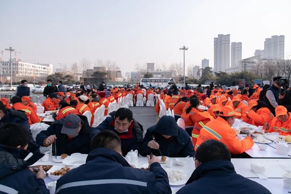 “宁愿一人脏,换来万家洁。餐桌拼成‘家’字,一方面寓意着大家在元宵佳节可以阖家团圆,同时也是希望环卫工作者们可以把宴会现场当做自己的家,安心自在就餐。”张乾表示,凯发k8体育APP多年举办该项活动,与公司的“家”文化息息相关,希望通过我们的努力,在全社会传递关爱、尊重、理解环卫工作者、支持环卫工作的正能量,希望我们共同用双手和智慧,投身中国式现代化建设伟大实践,用行动和努力,为打造美丽中国、善美保定而努力奋斗。