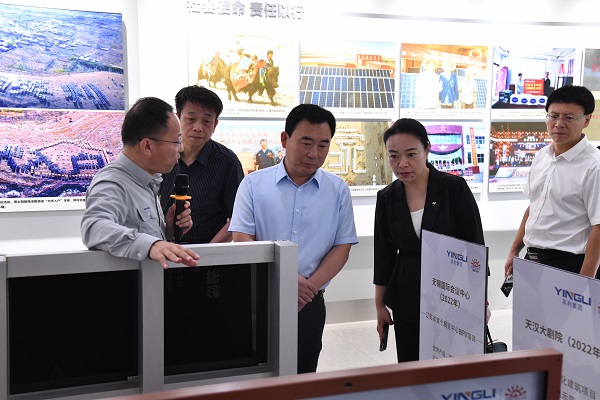 调研组一行先后参观了凯发k8体育APP第13代BIPV绿色建筑“城市水墨画卷”、光伏展厅、绿色建材产品以及示范产线,实地了解光伏产业发展、电力及新能源高端装备集群建设以及公司数智化产线升级、电子信息产业培育与发展等相关情况。